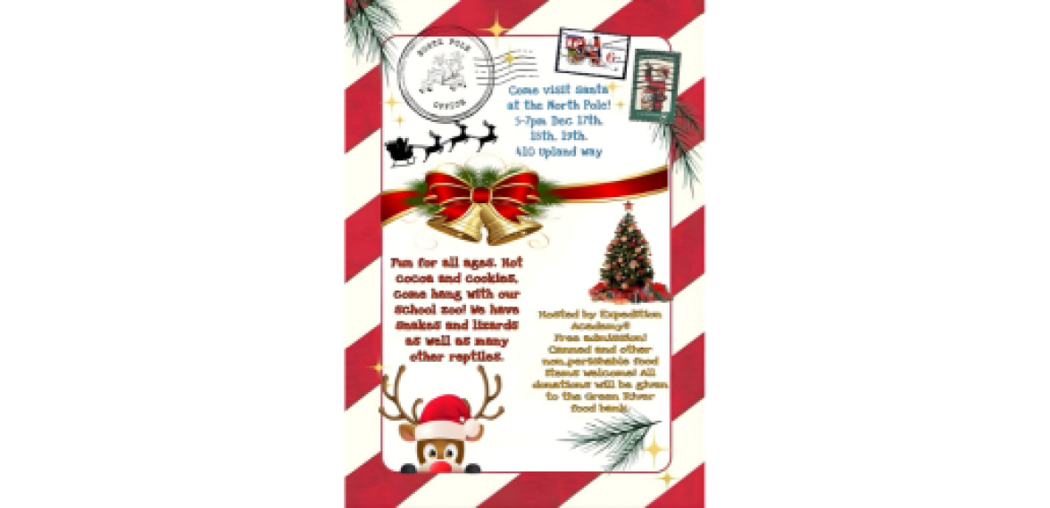 Expedition Academy High School invites the community to celebrate the season at Santa’s Workshop 2025, a three-evening holiday extravaganza held December 16–18 from 5:00–7:00 PM at 410 Upland Way in Green River. Families are welcomed into a cheerful, North Pole–themed wonderland filled with activities for all ages. Meet Santa Claus, warm up with hot cocoa and fresh cookies, get festive with face painting, and don’t miss a visit to the school’s beloved Reptile Zoo, always a highlight for curious kids and adults alike.
