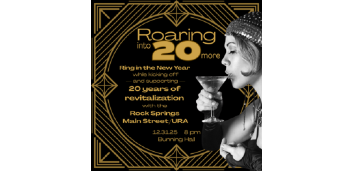 Step back in time and ring in the new year with 1920s glamour as we kick off the 20th year of Downtown Rock Springs redevelopment at our dazzling gala: Roaring Into 20 More.