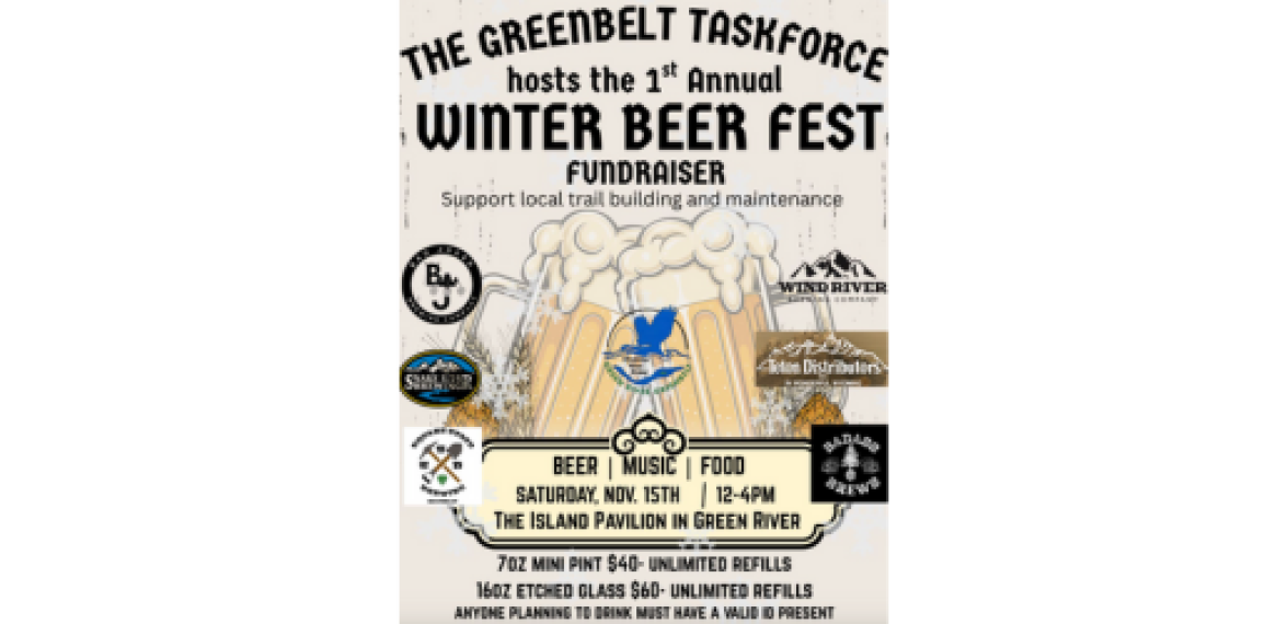 Join the Greenbelt Taskforce for the 1st Annual Winter Beer Fest Fundraiser, a celebration of great brews, live music, and local food — all in support of trail building and maintenance for the Green River Greenbelt. This festive community event will take place on Saturday, November 15th, from 12–4 PM at The Island Pavilion in Green River.
